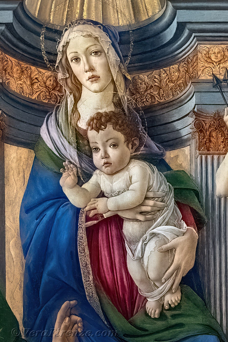 «La Madonna con il Bambino in trono e sei santi» di Botticelli alla Galleria degli Uffizi di Firenze